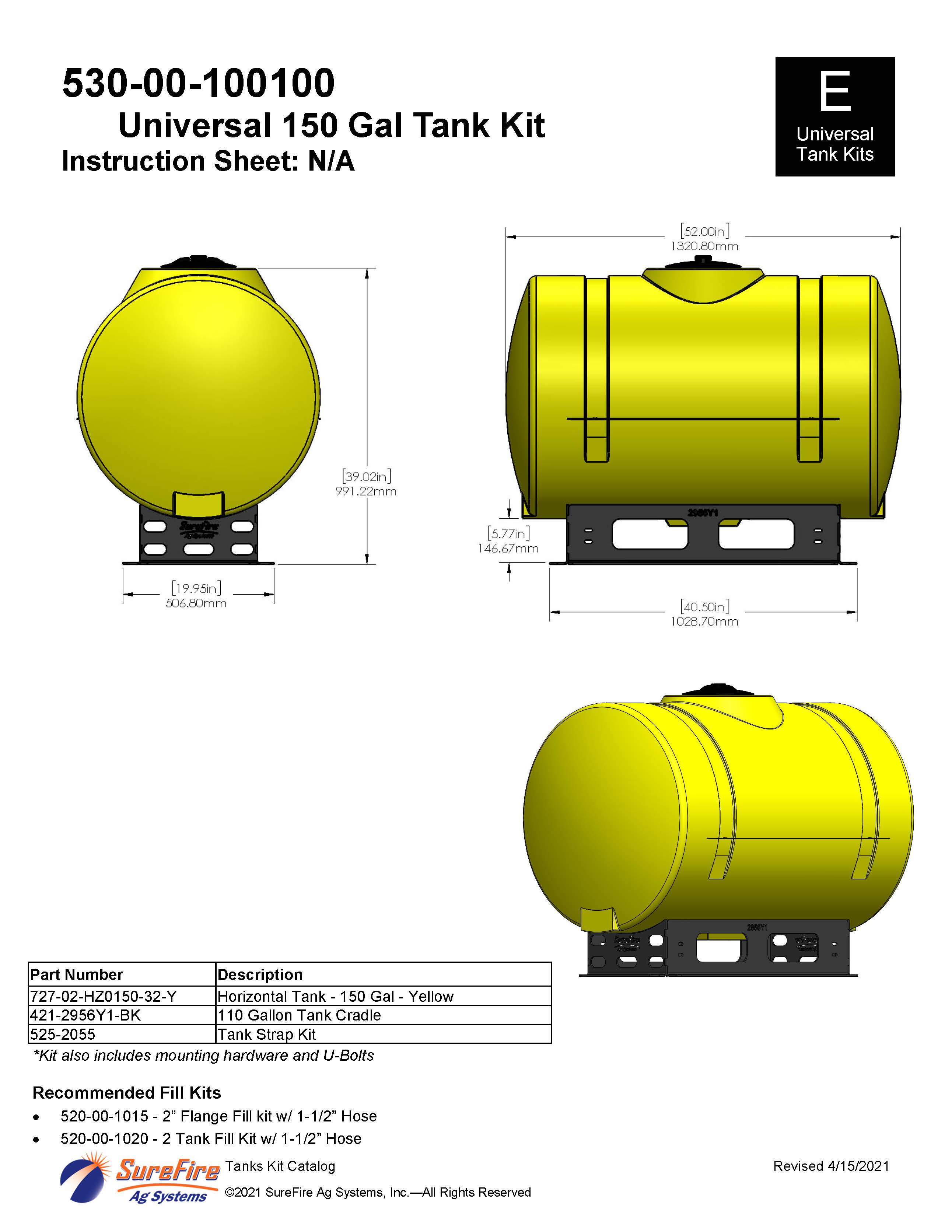 530-00-100100 - Universal 150 Gal Yellow Tank Kit for 32 Tank Black Saddles